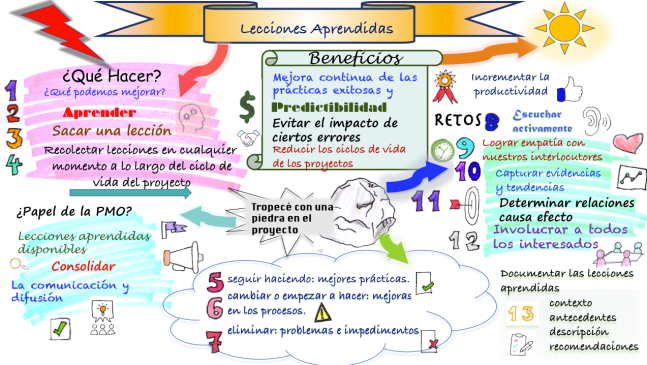 La comunicación y difusión por parte de la PMO de estos cambios identificados y requeridos son actividades fundamentales con un alto grado de agregación de valor. Las lecciones aprendidas forman parte de los activos de la organización y siempre nos ayudan a retroalimentarnos como equipo y como organización. Aprender de las oportunidades de mejoras ya detectadas en experiencias previas son una parte crucial del camino a transitar para lograr el éxito reiterado de los proyectos.