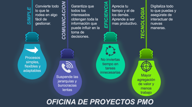 • Valora la simplicidad. Convierte todo lo que te rodea en algo fácil de gestionar. Simplifica la tecnología, los procesos, las interacciones, los reportes. La percepción sobre la complejidad o la burocracia de los procesos, plantillas y herramientas de PMO pueden llevarla a un uso subóptimo, poniendo en tela de juicio los beneficios y disminuyendo el valor que generamos. Con la crisis COVID19 y el trabajo remoto nos hemos vuelto más eficientes, hemos eliminado los excesos y algunas prácticas que resultan no ser tan buenas.