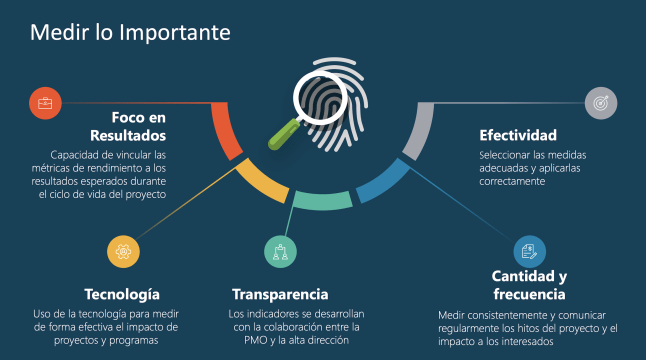 La PMO debe medir y demostrar cómo cada iniciativa contribuye a indicadores del negocio: ROI, satisfacción del cliente, reducción en costos, adherencia a la estrategia o ventaja competitiva.